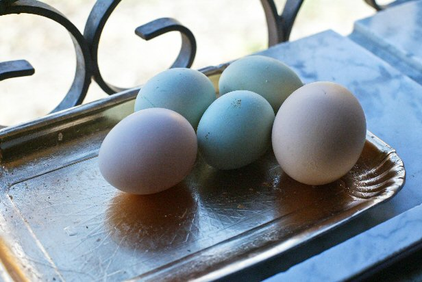 I gusci delle uova di gallina sono solitamente bianchi, sia internamente che esternamente, o rossicci, all'esterno e bianchi all'interno. La gallina Araucana, originaria del sud America ed in via di estinzione, oggi presidio slow food internazionale, chiamata anche “Ovaiola delle uova di Pasqua”, fa le uova dal guscio celeste, sia internamente che esternamente. Il colore è determinato dalla presenza di un raro terzo gene, "olivo". Questo gene risulta dominante: infatti se esso si combina con quello che determina il colore bianco, le uova saranno comunque celesti, sia all'esterno che all'interno, mentre se si combina con quello che determina il colore rossiccio, allora il guscio esterno sarà verde mentre quello interno rimane celeste. Nulla cambia per il colore del tuorlo o dell'albume. Le uova presentano un basso contenuto di colesterolo che le rende più digeribili delle consuete l'uovo sodo non aderisce al palato e la frittatina si presenta più soffice, come "soffiata". Le uova celesti si trovano raramente in commercio perchè la gallina Araucana deve essere cresciuta all'aria aperta e non è compatibile con l'allevamento intensivo; questo aspetto, di fatto, rende il colore celeste o verde in un infallibile marchio di qualità. Sono prodotte in Nusco dalla azienda agricola Fulget Vita (3484013855).